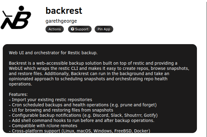 CLI binary is included within the BackRest docker container, installed via Unraid Apps: