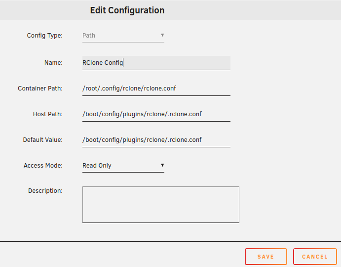 Be sure to add a new Path that will allow the Rclone config on Unraid OS to be shared into the Backrest container as well: