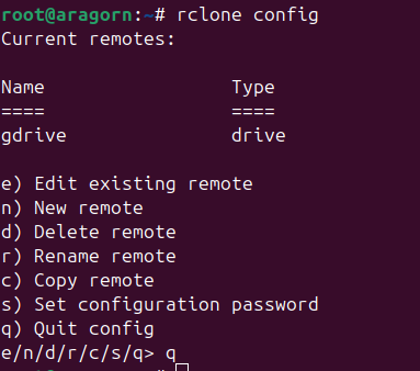 and add a new rclone remote, which I called ‘gdrive’. To verify that rclone can access Google Drive, run rclone lsd gdrive