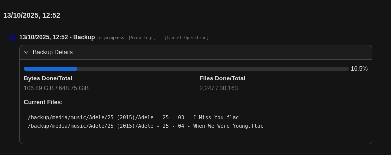 As this was my first backup, it took about half a day. I immediately saw that Restic was creating files within the Backups folder I had created in Google Drive.