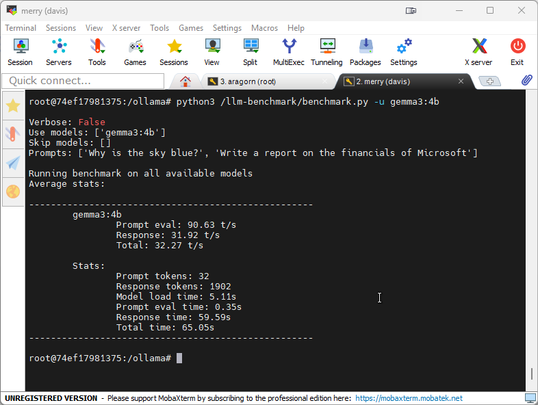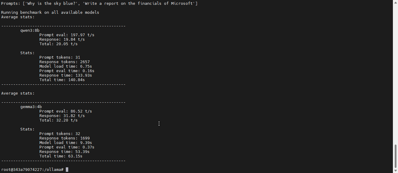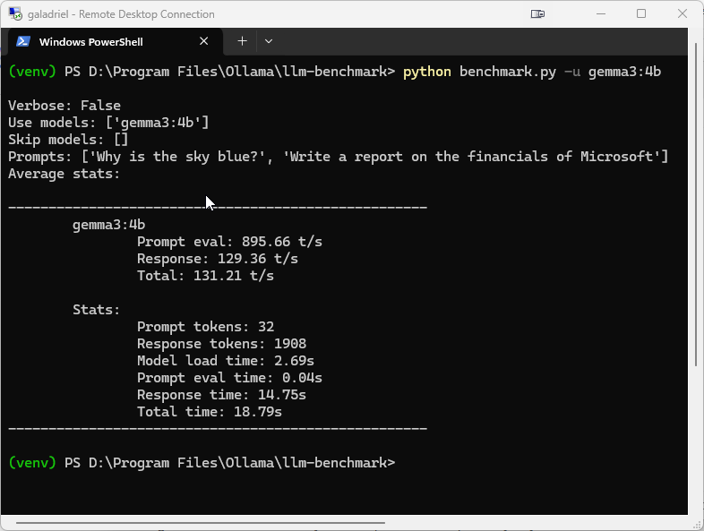 After forking and fixing a simple LLM benchmarking script, I deployed it to all 3 of my systems to see how well they ran the same prompts using the gemma3:4b as a common test.