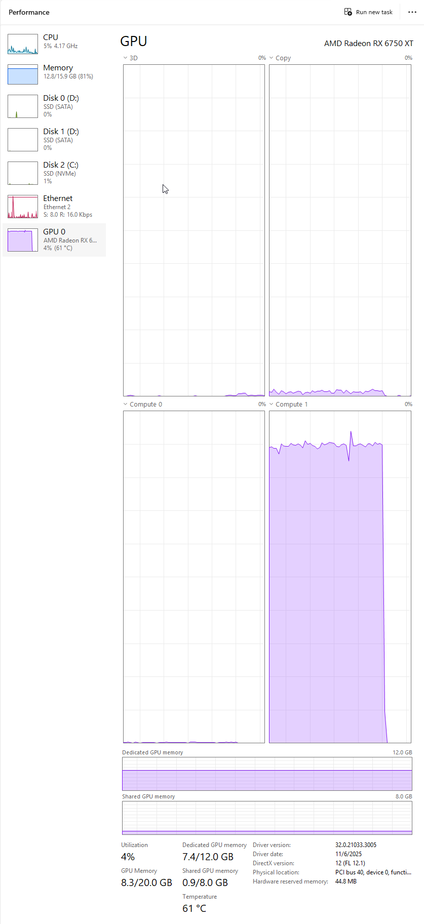 Earlier this year, I experimented with various LLM models using Ollama on our gaming PC with a Nvidia RTX 3070ti GPU. At the time, I had also tried with our other gaming PC running on an AMD Radeon 6700xt GPU. Unfortunately, I wasn’t successful and the models on that PC had fallen back to the CPU, resulting in running times at least 10x slower than the Nvidia GPU system.